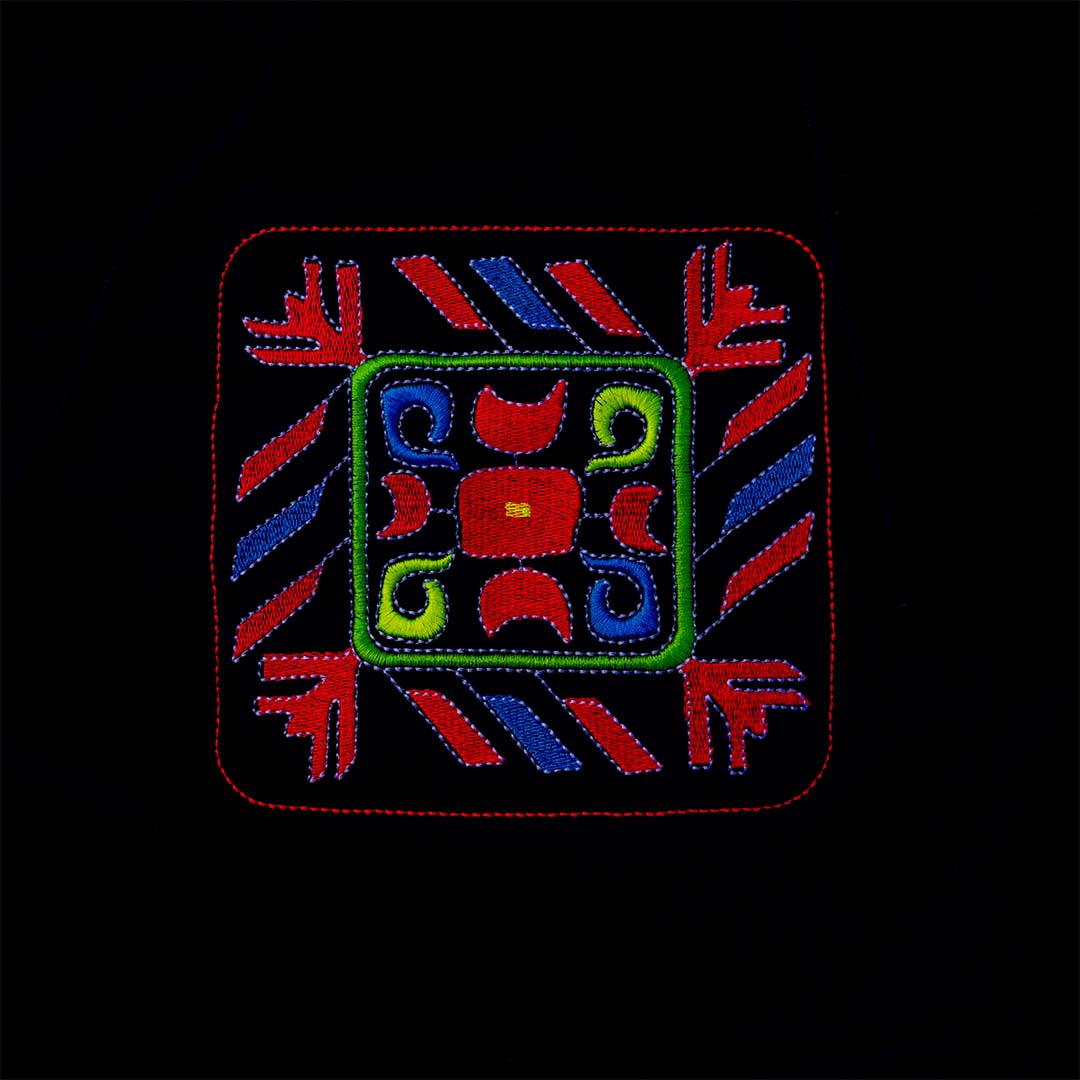 Вдъхновена от българските фолклорни мотиви, тази блуза комбинира традиционна шевица с неонови цветове, създавайки модерен и привличащ погледите акцент.