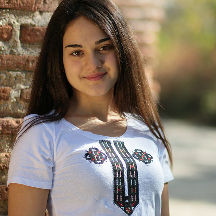 Подходяща както за ежедневни, така и за специални поводи, тениската се комбинира лесно с дънки, пола или панталони, добавяйки елегантен и традиционен акцент към всяка визия.